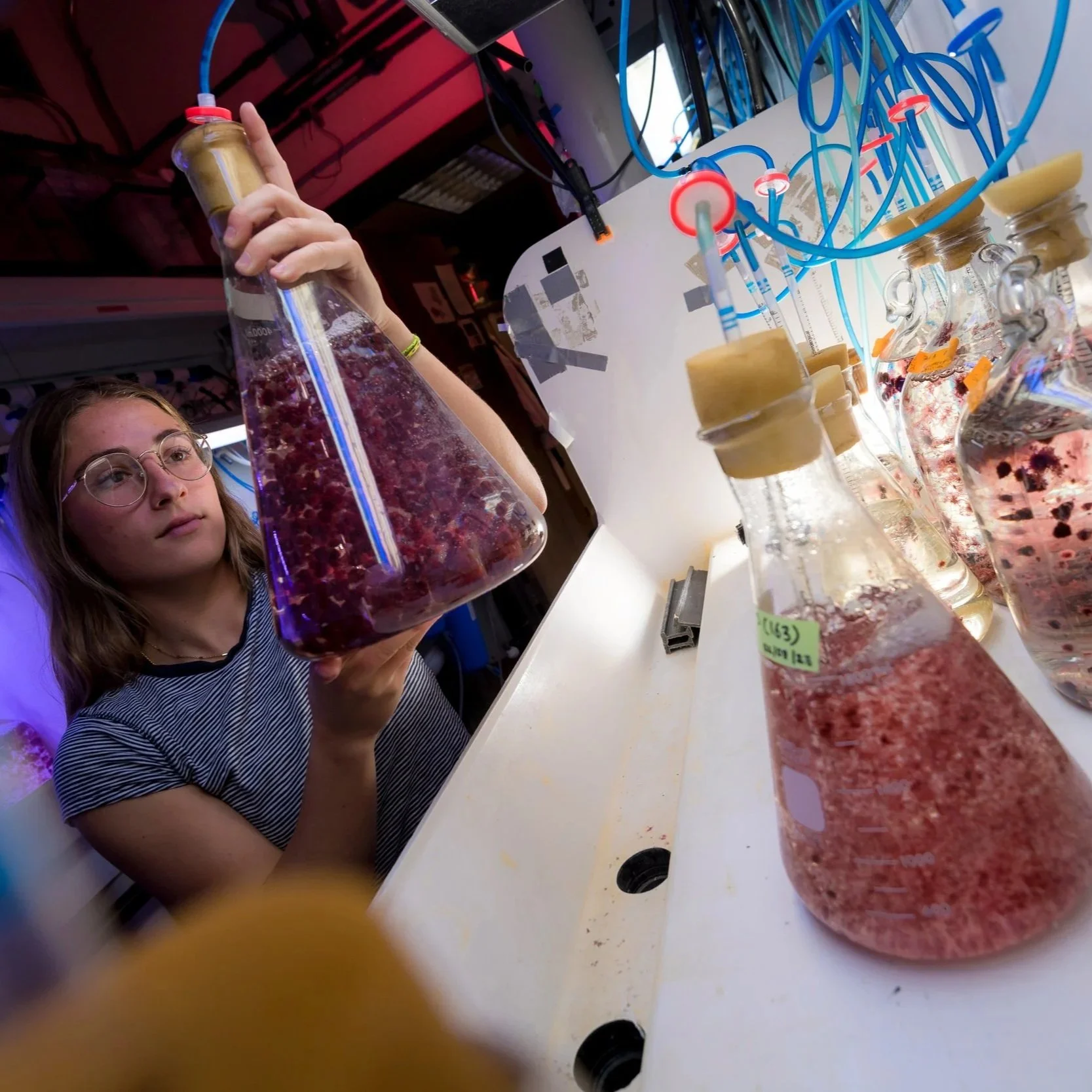 Tess is a marine biologist focused on sustainable marine solutions for climate change mitigation. She earned her MS at Scripps Institution of Oceanography, UC San Diego, where she investigated the thermal optimum of Asparagopsis taxiformis, a red alga with potential to reduce methane emissions in livestock. Her current research continues to focus on A. taxiformis, optimizing cultivation by characterizing key aspects of its physiology to support broader application.